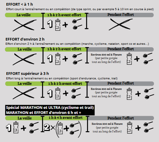 Pour un sportif débutant : Nous conseillons de prendre 20 g (1 dosette) dans 500 ml d'eau pendant l’effort
